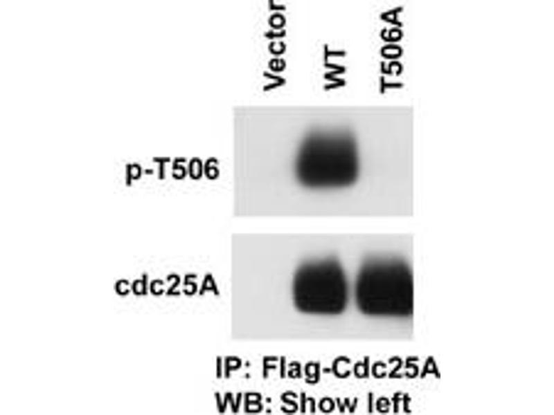This antibody is generated from rabbits immunized with a KLH conjugated synthetic phosphopeptide corresponding to amino acid residues surrounding T506 of human Cdc25A.