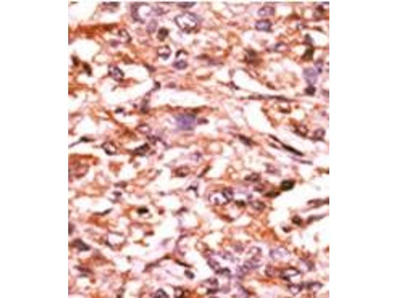 ELISA: 1/1,000. Western Blot: 1/100-1/500. Immunohistochemistry: 1/50-1/100. Other applications not tested. Optimal dilutions are dependent on conditions and should be determined by the user.