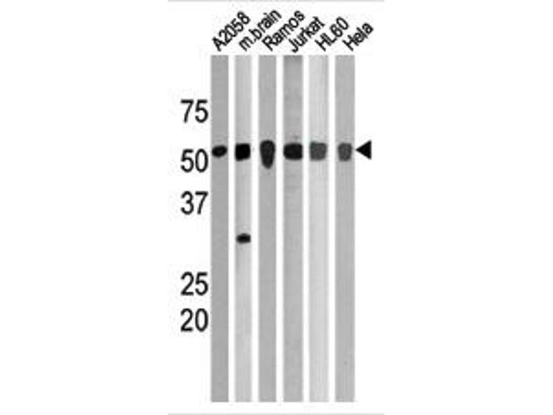 Checkpoint pathways control the order and timing of cell cycle transitions and ensure that critical events, such as DNA replication and chromosome segregation, are completed with high fidelity. The S. pombe Chk1 gene encodes a protein kinase that is required for the DNA damage checkpoint. Antibodies against CHK1 recognized a 54-kD protein on immunoblots of mammalian cell extracts. However,CHK1 is modified in response to DNA damage. In vitro, CHK1 directly phosphorylated a regulator of CDC2 tyrosine phosphorylation, CDC25C. In response to DNA damage, CHK1 phosphorylates and inhibits CDC25C, thus preventing activation of the CDC2-cyclin B complex and mitotic entry. CHK1 directly phosphorylates CDC25A during an unperturbed cell cycle, and that phosphorylation of CDC25A by CHK1 is required for cells to delay cell cycle progression in response to double-strand DNA breaks.Synonyms: CHEK-1, CHEK1, CHK1 checkpoint homolog, Serine/threonine-protein kinase Chk1
