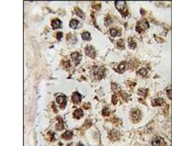 ELISA: 1/1000. Western Blot: 1/100 - 1/500. Immunohistochemistry: 1/10 - 1/50. Other applications not tested. Optimal dilutions are dependent on conditions and should be determined by the user.