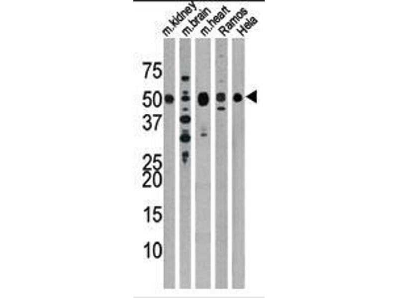 ELISA: 1/1,000. Western blotting: 1/100 - 1/500. Other applications not tested. Optimal dilutions are dependent on conditions and should be determined by the user.