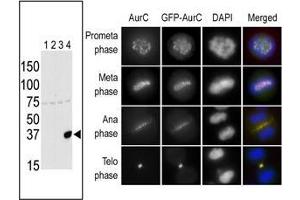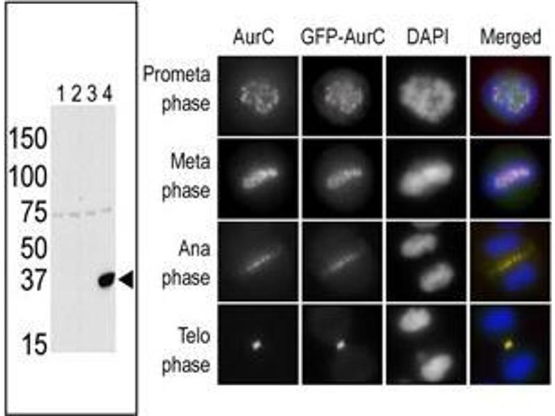 Chromosomal segregation during mitosis as well as meiosis is regulated by kinases and phosphatases. The Aurora kinases, members of the Ser/Thr protein kinase family, associate with microtubules during chromosome movement and segregation. Aurora kinase C may play a part in organizing microtubules in relation to the function of the centrosome/spindle pole during mitosis. This protein is localized to centrosome from anaphase to cytokinesis. Expression is limited to testis in normal cells. Elevated expression levels are seen only in a subset of cancer cells such as HepG2, HuH7 and HeLa cells. Aurora-C expression is maximum at M phase.Synonyms: AIE2, AIK3, AURKC, Aurora-C, Aurora/Ipl1-related kinase 3, Aurora/Ipl1/Eg2 protein 2, STK13, Serine/threonine-protein kinase 13