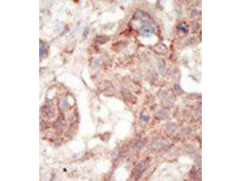 ELISA: 1/1,000. Western blotting: 1/100 - 1/500. Immunohistochemistry: 1/50- 1/100. Other applications not tested. Optimal dilutions are dependent on conditions and should be determined by the user.