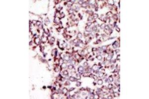 ELISA: 1/1,000. Western blotting: 1/100 - 1/500. Immunohistochemistry: 1/50 - 1/100. Other applications not tested. Optimal dilutions are dependent on conditions and should be determined by the user.