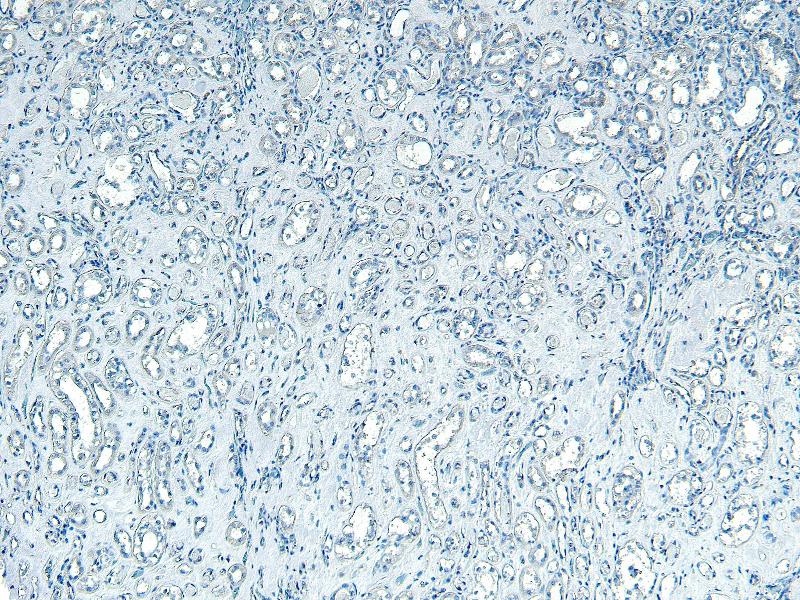 Immunohistochemistry: Paraffin embedded Human Kidney. Recommended concentration: 8 μg/mL.