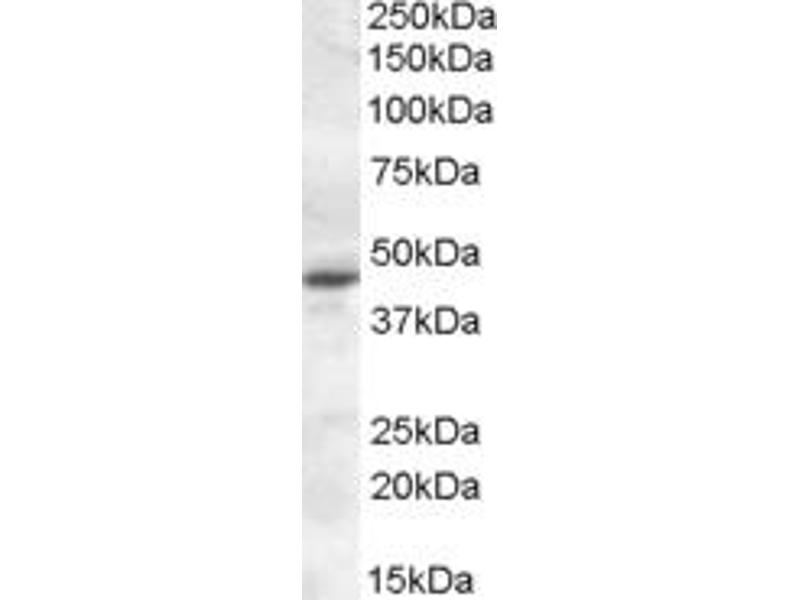 Western Blot: Approx 40 kDa band observed in Rat Retina lysates (calculated MW of 39.8 kDa according to Rat NP_446128.1). Recommended concentration: 1-3 μg/mL. An additional band of unknown identity was also consistently observed at 50 kDa. This band was suc