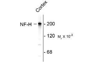 - Neurofilaments are the 10nm or intermediate filament proteins found specifically in neurons, and are composed predominantly of three major proteins called NF-L, NF-M and NF-H (1). NF-H is the neurofilament high or heavy molecular weight polypeptide and runs on SDS-PAGE gels at 200-220 kDa, with some variability across species boundaries. Antibodies to NF-H are useful for identifying neuronal cells and their processes in tissue sections and in tissue culture. NF-H antibodies can also be useful to visualize neurofilament accumulations seen in many neurological diseases, such as Amyotrophic Lateral Sclerosis (Lou Gehrig's disease) (2) and Alzheimer's disease (3). Anti-Neurofilament H Western blot of rat cortex lysate showing specific immunolableing of the ~ 200k NF-H protein.