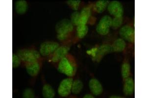 - Specific for endogenous levels of human nuclear staining pattern. Chromosomes are negatively stained in metaphase cells. With immunoprecipitation, the antibody reacts with a ~80 kDa and ~70 kDa band. The antibody works on acetone fixed and paraformaldehyde fixed cells. It is suggested that you permeabilize the cells with 0.1-0.4 % Triton X100. The antibody also works for immunohistochemistry on paraformaldehyde fixed cryostat sections.