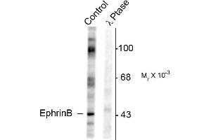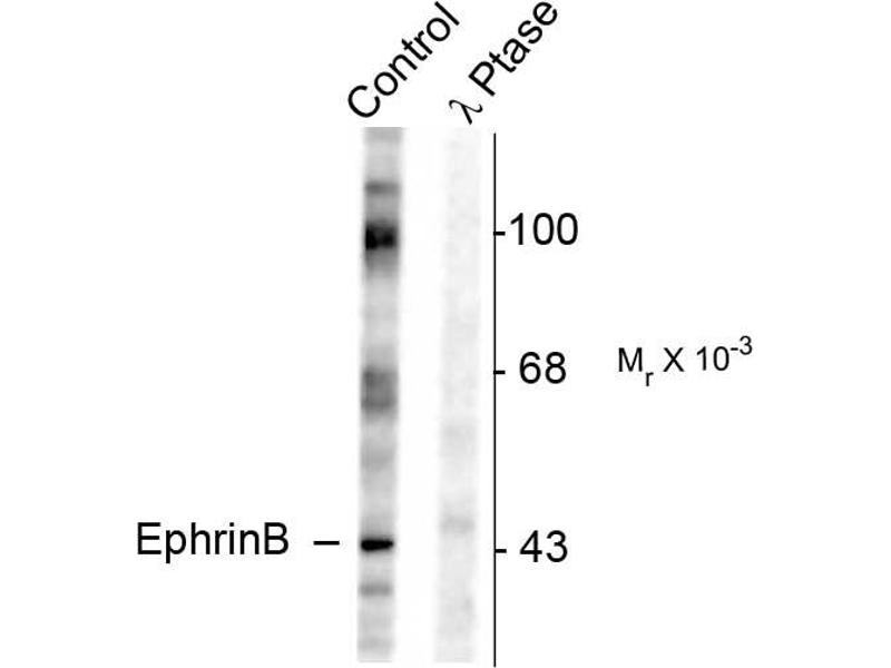 - Specific for endogenous levels of the ~46 kDa EphrinB protein phosphorylated at Tyr317. Immunolabeling is completely eliminated by treatment with λ-phosphatase.