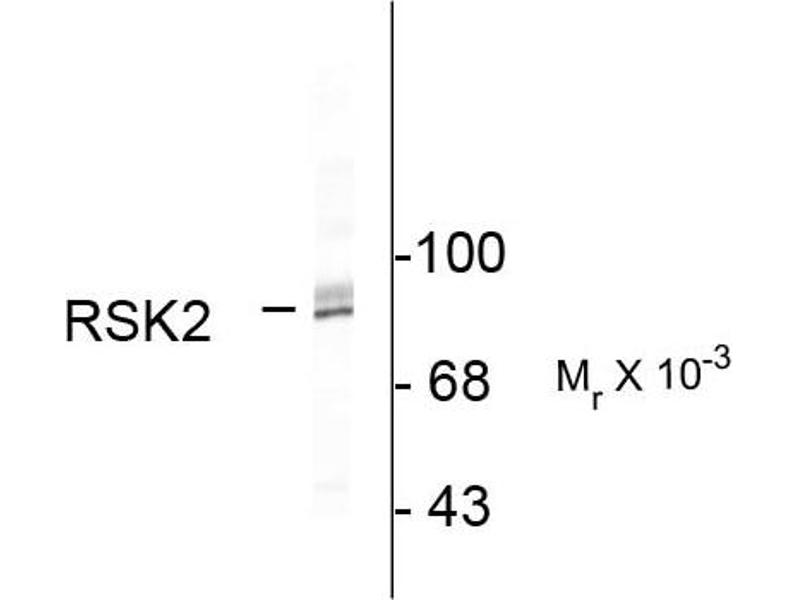 - Specific for endogenous levels of the ~90 kDa RSK2 protein.