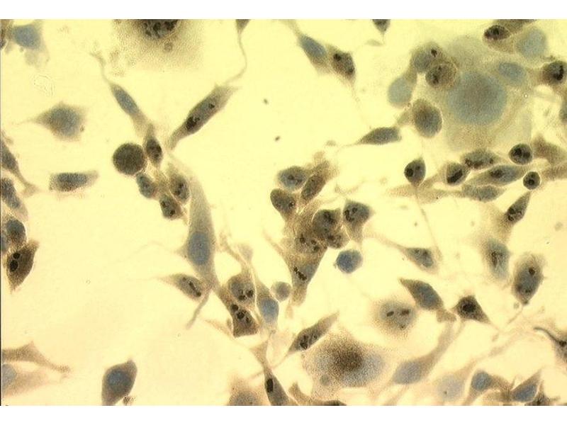 1 μg/ml of ABIN361707 was sufficient for detection of HSP70 in 20 μg of heat shocked HeLa cell lysate by colorimetric immunoblot analysis using Goat anti-mouse IgG:HRP as the secondary antibody.