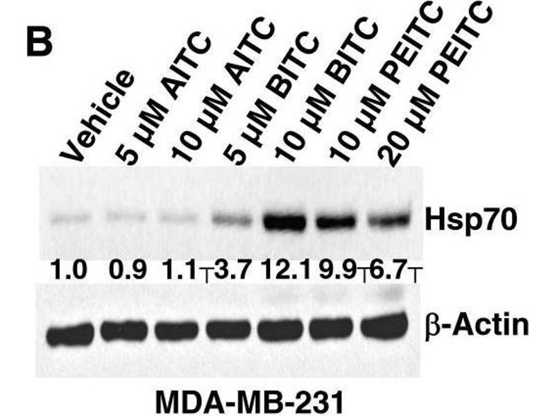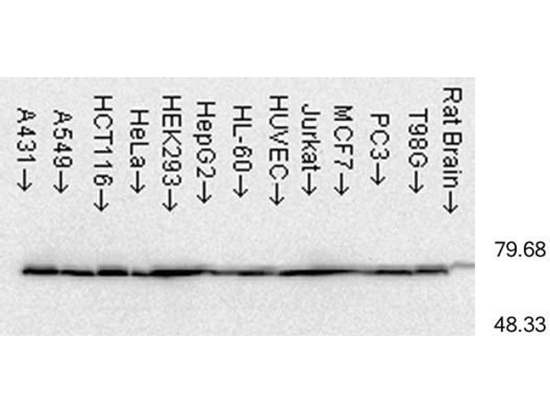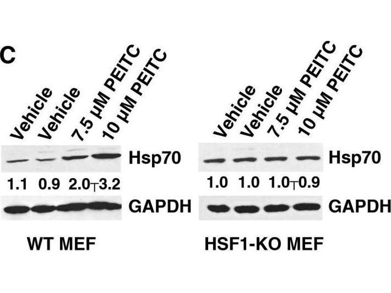 - Detects ~70 kDa. Does not cross-react with HSC70 (HSP73).