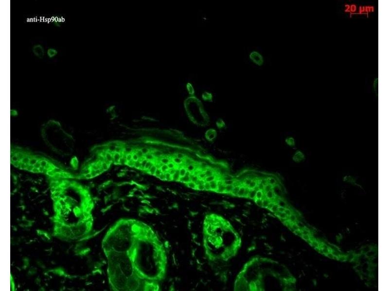 - Detects 90 kDa. Will detect both alpha (inducible) and beta (constitutively-expressed) forms.