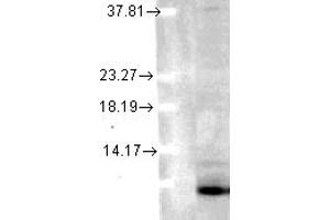 1 μg/ml of ABIN361817 was sufficient for detection of ubiquitin in 10 μg of Hela Lysate by colorimetric immunoblot analysis using Goat anti-mouse IgG:HRP as the secondary antibody.