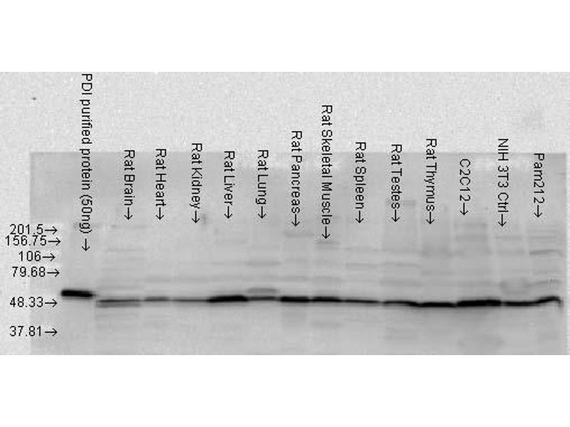 A 1:1000 dilution of ABIN361828 was sufficient for detection of PDI in 20 μg of HeLa cell lysate by ECL immunoblot analysis.