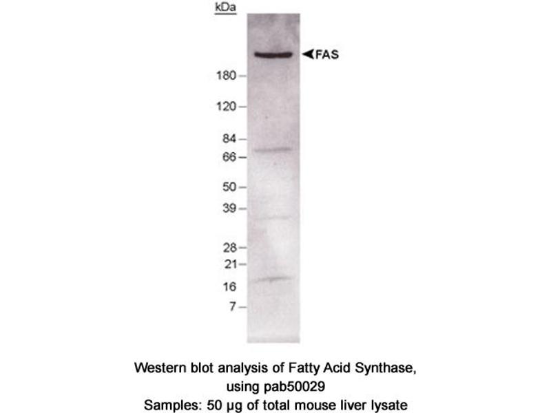 - An internal synthetic peptide, conjugated to KLH, made near the N-terminus of the mouse FAS protein sequence.