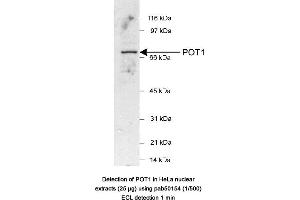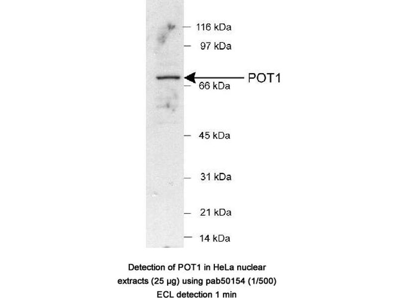 - Synthetic peptide made to an internal portion of the human POT1 protein sequence (between residues 200-300)
