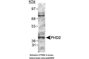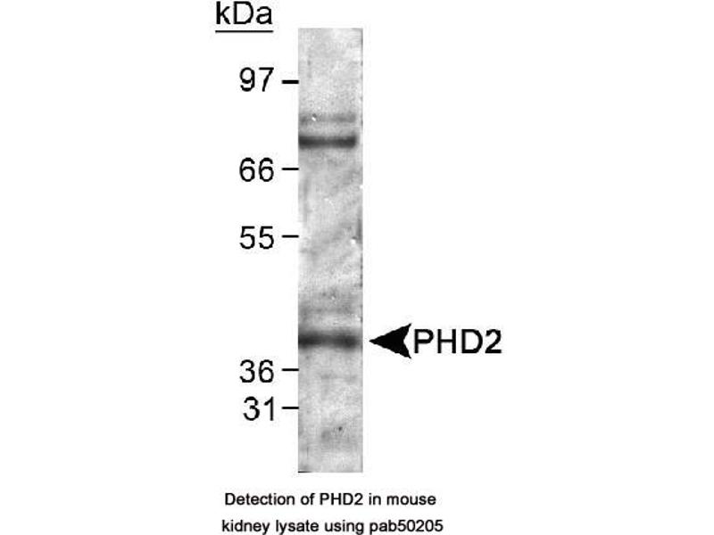- Synthetic peptide made to an internal portion of the mouse PHD2 protein sequence (between residues 300-400)