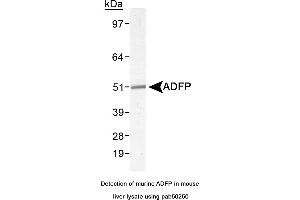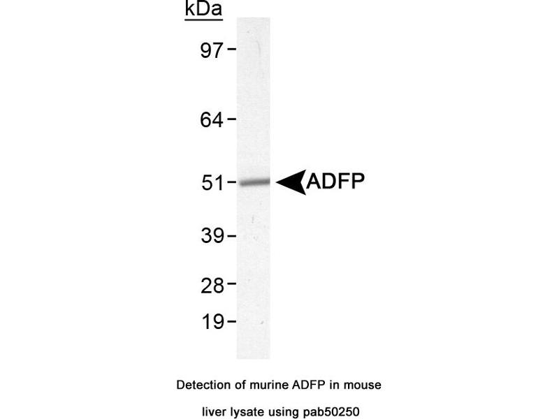 - Reacts with human and mouse ~46 kDa Perilipin-2 protein