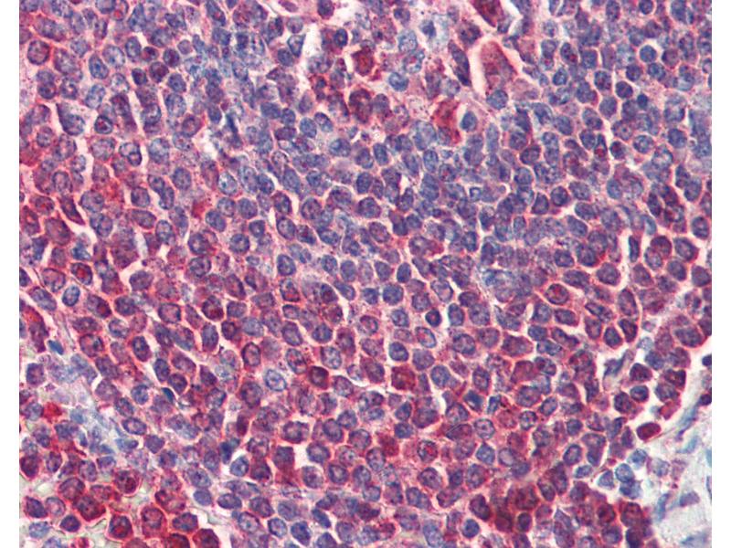 Usage: Immunohistochemistry: This antibody was validated for use in immunohistochemistry on a panel of 21 formalin-fixed, paraffin-embedded (FFPE) human tissues after heat induced antigen retrieval in pH 6.0 citrate buffer. After incubation with the primary antibody, slides were incubated with biotinylated secondary antibody, followed by alkaline phosphatase-streptavidin and chromogen. The stained slides were evaluated by a pathologist to confirm staining specificity. The optimal working concentration for this antibody was determined to be 5-10 μg/mL. Flow Cytometry (Intracellular): 0.1-2 μg/10^6 cells, cell surface. The applications listed have been tested for the unconjugated form of this product. Other forms have not been tested. -