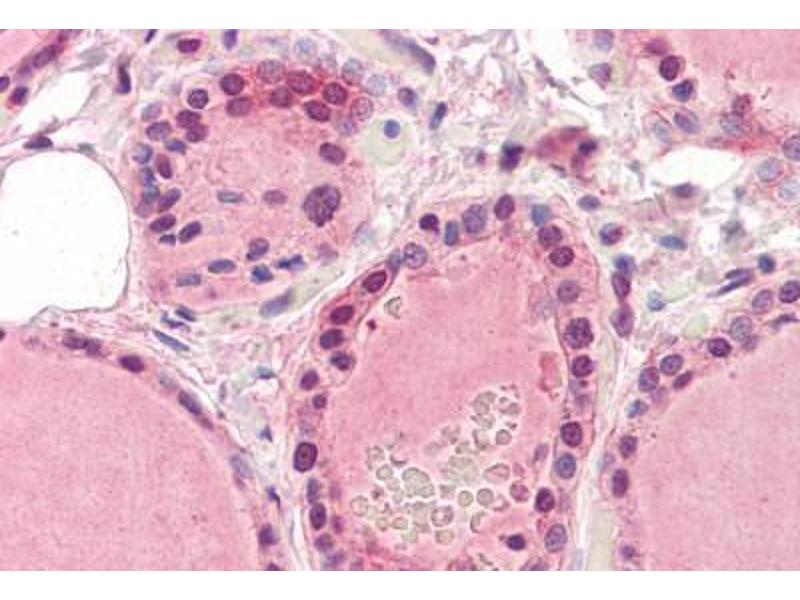 Usage: Immunohistochemistry: This antibody was validated for use in immunohistochemistry on a panel of 21 formalin-fixed, paraffin-embedded (FFPE) human tissues after heat induced antigen retrieval in pH 6.0 citrate buffer. After incubation with the primary antibody, slides were incubated with biotinylated secondary antibody, followed by alkaline phosphatase-streptavidin and chromogen. The stained slides were evaluated by a pathologist to confirm staining specificity. The optimal working concentration for this antibody was determined to be 5 μg/mL. -
