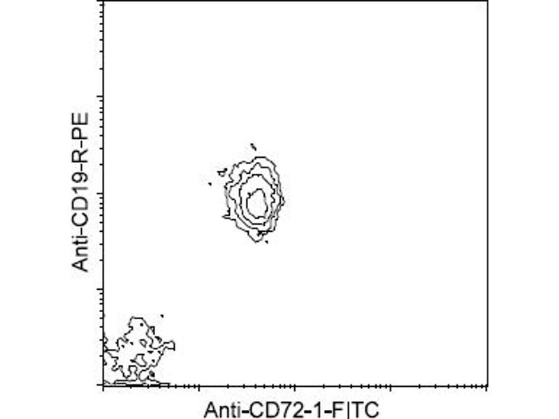 Murine CD72.1/Lyb-2.1, a type II integral membrane glycoprotein and a member of the C-lectin family of cell surface receptors, is a differentiation antigen of B cells, and is found in mouse strains expressing the Lyb-2.1 allotype. CD72.1 is the ligand of CD5 (Ly-1) which is distributed on all T cells and a small number of B cells. (Ref.1,2) This clone blocks binding of CD5 to CD72 on the B cell surface, which leads to inhibition of the positive signal resulting from CD5/CD72 pairing. (Ref.1) However, 10-1.D.2 can itself trigger a positive signal by binding CD72. (Ref.1-5)Synonyms: B-Cell marker, B-cell differentiation antigen CD72, Ly-32, Ly32, Lyb-2, Lymphocyte antigen 32