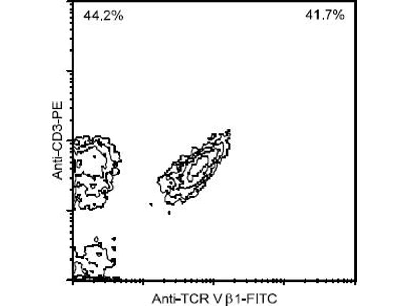 The receptors on T cells consist of immunoglobulin like integral membrane glycoproteins containing 2 polypeptide subunits, alpha and beta, of similar molecular weight, 40 to 55 kD in the human. Like the immunoglobulins of the B cells, each T cell receptor subunit has, external to the cell membrane, an N terminal variable domain and a C terminal constant domain. T cell receptors recognise foreign antigens which have been processed as small peptides and bound to major histocompatibility complex molecules at the surface of antigen presenting cells. Each T cell receptor is a dimer consisting of one alpha and one beta chain or one delta and one gamma chain. In a single cell, the T cell receptor loci are rearranged and expressed in the order delta, gamma, beta, and alpha. If both delta and gamma rearrangements produce functional chains, the cell expresses delta and gamma. If not, the cell proceeds to rearrange the beta and alpha loci.Synonyms: T Cell Receptor alpha/beta, TCR-VB1, TCR-Vbeta1, TCRA, TCRB, VB1, Vbeta-1