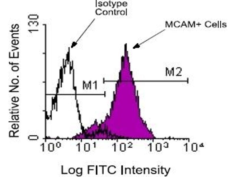 CD146 belongs to the immunoglobulin supergene family with five immunoglobulin like domains (V-V-C2-C2-C2), a transmembrane region and a 63 residue cytoplasmic tail. The protein is a membrane glycoprotein that functions as a Ca2+ independent cell adhesion molecule involved in heterophilic cell to cell interactions. CD146 has a molecular size of 130 kDa in its reduced form (118 kDa unreduced), and N linked glycosylation accounts for fifty percent of the apparent molecular weight. In some cells the molecule carries a sulfate 3 glucuronyl moiety. Expression of the molecule was shown in a relatively limited spectrum of normal human tissues (endothelium, smooth muscle, and subpopulations of activated T cells) and malignant neoplasm (melanoma and breast carcinoma). The lineage specific expression pattern of CD146 can be useful in the differential diagnosis of certain lesions including melanomas and various types of gestational trophoblastic lesions. CD146 expression can promote tumor progression in human melanoma, through enhanced interaction between melanoma cells and endothelial cells. However, in breast carcinoma, CD146 may act as a tumor suppressor. Overexpression of CD146 in breast carcinoma cells results in a more cohesive cell growth and in the formation of smaller tumors in nude mice. During implantation and placentation, CD146 is expressed by the intermediate trophoblast in the placental site and binds to its putative receptor in uterine smooth muscle cells thus limiting trophoblastic invasion in the myometrium. Monoclonal antibody specific for CD146 is an important tool for the identification and isolation of cells expressing CD146.Synonyms: A32, CD146, Cell surface glycoprotein P1H12, MCAM, MUC18, Melanoma cell adhesion molecule, Melanoma-associated antigen MUC18, S-endo 1 endothelial-associated antigen