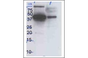 - This antibody precipitates ~42 kDa and ~44 kDa bands, corresponding to Erk1 and Erk2, respectively.