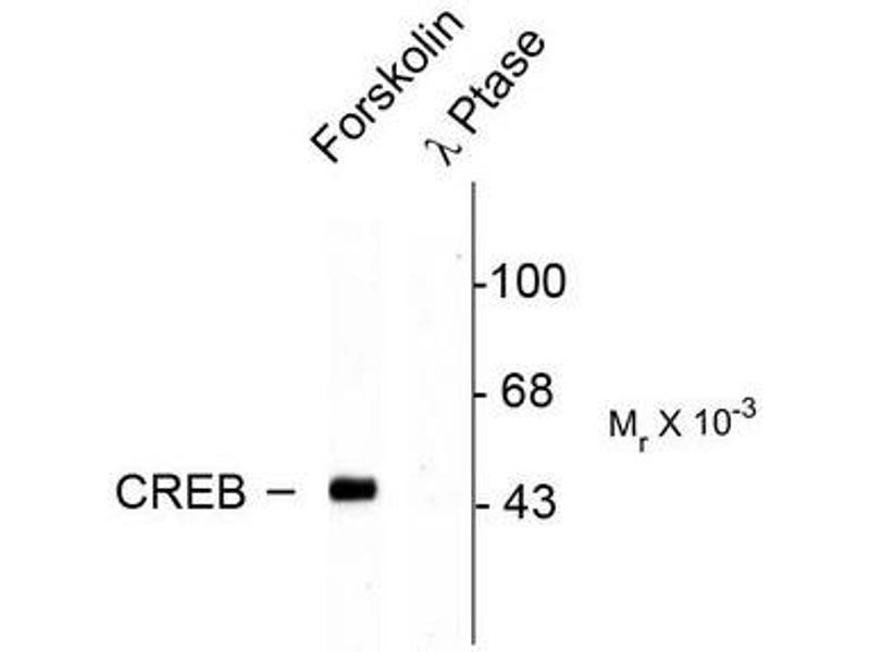 - Specific for the ~45k CREB protein phosphorylated at Ser133. Immunolabeling is blocked by lambda-phosphatase treatment.