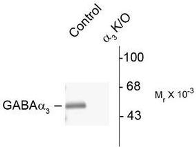 Der Kaninchen Polyklonal anti-GABRA3 Antikörper (ABIN372630) detektiert spezifisch GABRA3 in WB und IHC (fro).