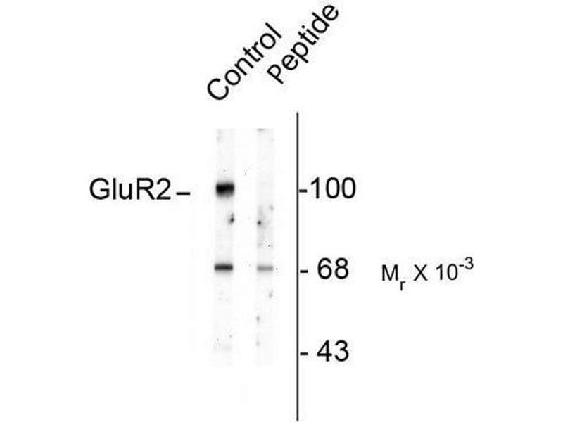 The ion channels activated by glutamate are typically divided into two classes. Those that are sensitive to N-methyl-D-aspartate (NMDA) are designated NMDA receptors (NMDAR) while those activated by alpha-amino-3-hydroxy-5-methyl-4-isoxalone propionic acid (AMPA) are known as AMPA receptors (AMPAR). The AMPAR are comprised of four distinct glutamate receptor subunits designated (GluR1-4) and they play key roles in virtually all excitatory neurotransmission in the brain (Keinänen et al., 1990, Hollmann and Heinemann, 1994). The number of GluR2 subunits in the AMPA receptor complex affects the Ca2+ permeability, rectification and single-channel conductance of AMPA receptors. Ser880 has been identified as the PKC phosphorylation site within the C-terminal region of GluR2 and has been shown to differentially regulate the interaction of the PDZ domain-containing proteins GRIP1 and PICK 1 (Matsuda et al., 1999)Synonyms: AMPA-selective glutamate receptor 2, AMPA2, GRIA2, GluR-B, GluR-K2, Glutamate receptor ionotropic