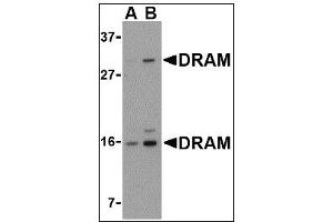 Damage-regulated autophagy modulator (DRAM) is a p53 target gene encoding a lysosomal protein that induces autophagy, a process that degrades cytosolic proteins and organelles. It has been suggested that activation of DRAM by p53 is simultaneous to the activation by p53 of one or more proapoptotic genes such as PUMA, Bax, etc., and that the signaling pathways regulated by these genes promote a full cell death response. By itself, DRAM cannot induce apoptosis, but the fact that it is inactivated in certain cancers highlights the importance of DRAM and suggests that autophagy may play a more important role in cancer than initially suspected. At least two different isoforms of DRAM are known to exist.Synonyms: DNA damage regulated autophagy modulator protein 1, DRAM, DRAM-1, FLJ11259