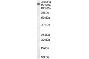 Peptide ELISA: Limit dilution 1: 16000. Western blot: 0.01-0.03 μg/mL. Approx 170 kDa band observed in lysates of cell lines Daudi,Jurkat and MOLT4 (calculated MW of 110 kDa according to NP_055521.1). The observedmolecular weight corresponds to earlier findings in literature with different antibodies(Yang et al, Cancer Res.1999 Aug 15,59(16): 4056-63, PMID: 10463607).