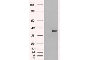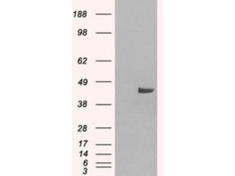 Peptide ELISA: 1/64000. Western blot: 0.05 - 0.2 μg/mL. Other applications not tested. Optimal dilutions are dependent on conditions and should be determined by the user.