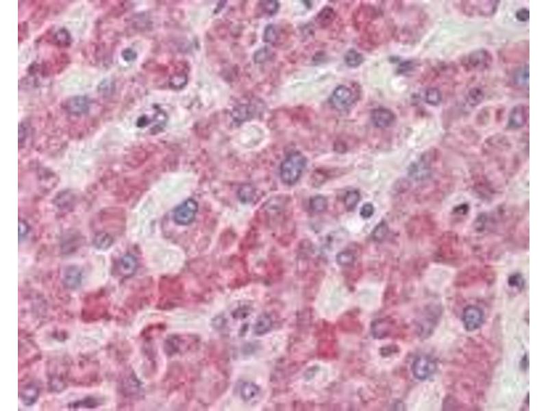 Peptide ELISA: 1/32000. Western blot: Approx 70 kDa band observed in Human Brain and 3T3 lysates (predicted MWof 60 kDa according to NP_002874). Recommended concentration: 0.1 - 0.5 μg/mL. Immunohistochemistry on paraffin sections: Human Liver shows vesicular staining in thecytoplasm of hepatocytes. Recommended concentration: 2 - 4 μg/mL. Other applications not tested. Optimal dilutions are dependent on conditions and should be determined by the user.