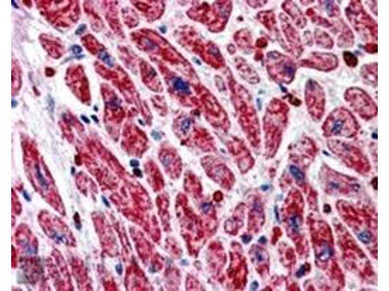 Peptide ELISA: Limit dilution 1: 32000. Immunohistochemistry: 5-10 μg/mL. In paraffin embedded Human Heart shows strongstaining of the capillary network and patterned staining of the myocardial fibres intransverse section. Other applications not tested. Optimal dilutions are dependent on conditions and should be determined by the user.