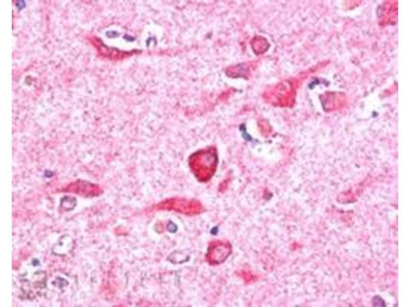 Peptide ELISA: Limit dilution 1: 16000. Western blot: Preliminary experiments gave an approx 50 kDa band in Human Heart lysatesafter 0.1 μg/mL antibody staining. The 50 kDa band was successfully blocked by incubationwith the immunizing peptide. Immunohistochemistry: 5-10 μg/mL. In paraffin embeddedHuman Cerebral Cortex shows strong staining of cytoplasm in several neuronal cells. Other applications not tested. Optimal dilutions are dependent on conditions and should be determined by the user.