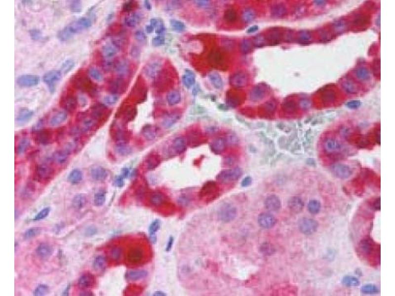 Peptide ELISA: 1/4000. Western Blot. Immunohistochemistry on paraffin sections: 2 - 3 μg/mL. Other applications not tested. Optimal dilutions are dependent on conditions and should be determined by the user.