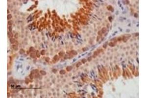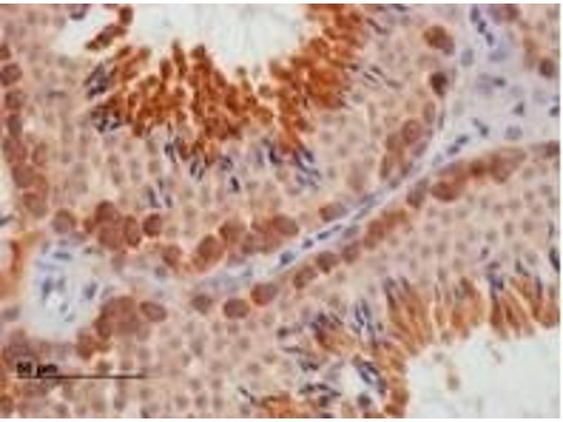 Peptide ELISA: 1/64000. Western blot: Approx 35 kDa band observed in human ovary and human testes lysates(calculated MW of 33.5 kDa according to NP_001342.2). Recommended concentration: 0.1 - 0.3 μg/mL. Immunohistochemistry on paraffin sections: Mouse Testis shows cytoplasm staining ofspermatogonia. Additional staining is observed in the cytoplasm of elongatng spermatidsbut this additional staining is not in agreement with results obtained by another antibody(Ruggiuet al, Nature.1997 Sep 4,389(6646): 73-7. PMID: 9288969). Data kindly provided by J. S. Martins, MRC, Edinburgh, UK. Recommended concentration: 1 - 3 μg/mL. Other applications not tested. Optimal dilutions are dependent on conditions and should be determined by the user.