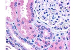 Peptide ELISA: 1/4000. Immunohistochemistry on paraffin sections: 2.5 μg/mL. Other applications not tested. Optimal dilutions are dependent on conditions and should be determined by the user.