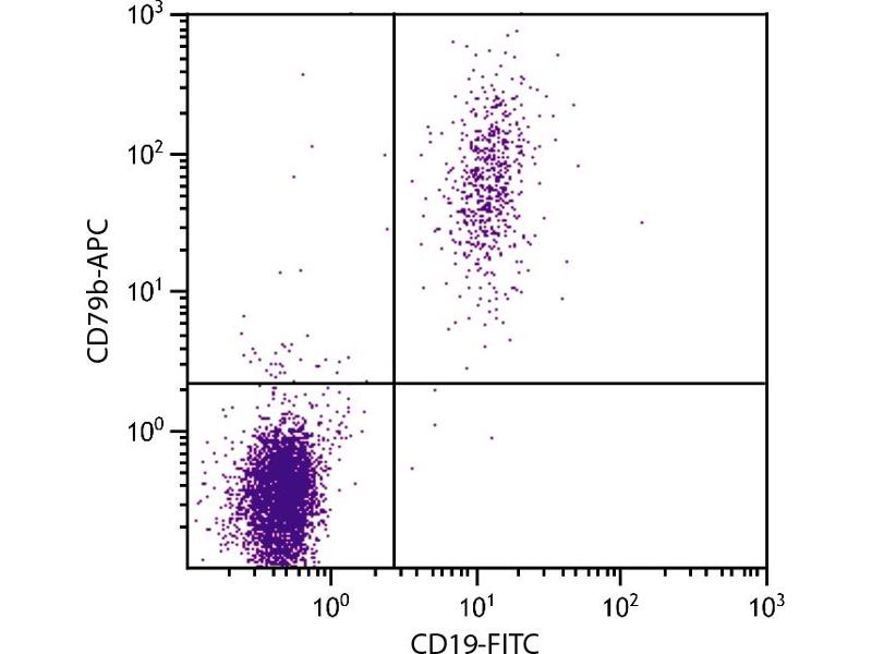 CD79 is a 23/21 disulfide-linked heterodimer composed of an α chain (CD79a/mb-1) and a β chain (CD79b/B29) that associates non-covalently with membrane immunoglobulin to form the B cell receptor (BCR) complex. Its expression is restricted to B lymphocytes, first appearing on the surface at the pro-B cell stage and remaining through all stages of B cell differentiation prior to plasma cells. Crosslinking of the BCR leads to B cell activation.