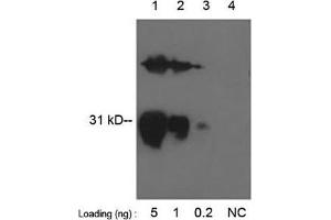 Working concentrations for specific applications should be determined by the investigator. Appropriate concentrations will be affected by several factors, including secondary antibody affinity, antigen concentration, sensitivity of detection method, temperature, and length of incubations, etc. The suitability of this antibody for applications other than those listed below has not been determined. The following concentration ranges are recommended starting points for this product. ELISA: 0.05- 0.2 µg/mL Western blot: 0.1-1 µg/mL Other applications: user-optimized