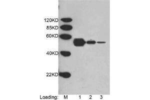 Working concentrations for specific applications should be determined by the investigator. The appropriate concentrations may be affected by secondary antibody affinity, antigen concentration, the sensitivity of the method of detection, temperature, the length of the incubations, and other factors. The suitability of this antibody for applications other than those listed below has not been determined. The following concentration ranges are recommended starting points for this product. ELISA: 0.05-0.2 µg/mL Western blot: 0.1-1.0 µg/mL Other applications: user-optimized
