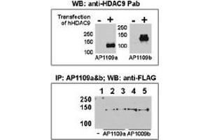 This HDAC9 antibody is generated from rabbits immunized with a KLH conjugated synthetic peptide between 503-533 amino acids from the C-terminal region of human HDAC9.