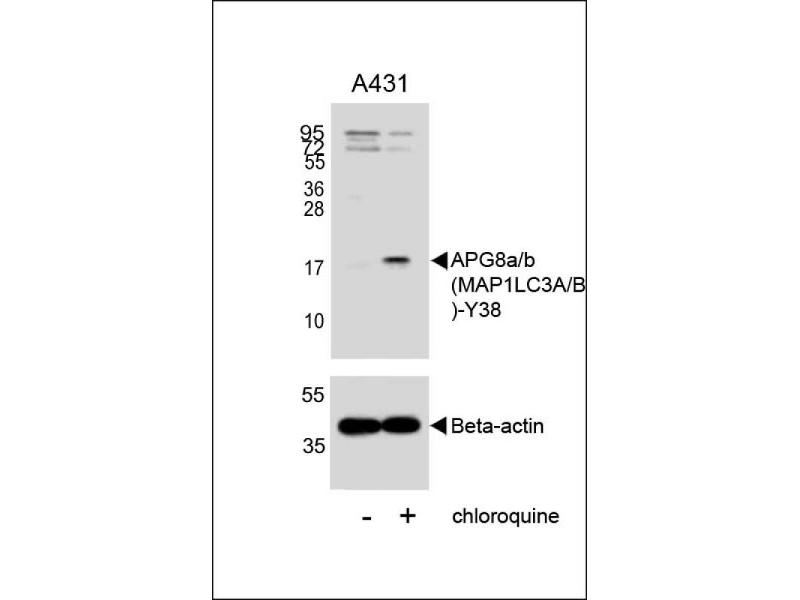 Macroautophagy is the major inducible pathway for the general turnover of cytoplasmic constituents in eukaryotic cells, it is also responsible for the degradation of active cytoplasmic enzymes and organelles during nutrient starvation. Macroautophagy involves the formation of double-membrane bound autophagosomes which enclose the cytoplasmic constituent targeted for degradation in a membrane bound structure, which then fuse with the lysosome (or vacuole) releasing a single-membrane bound autophagic bodies which are then degraded within the lysosome (or vacuole). MAP1A and MAP1B are microtubule-associated proteins which mediate the physical interactions between microtubules and components of the cytoskeleton. These proteins are involved in formation of autophagosomal vacuoles (autophagosomes). MAP1A and MAP1B each consist of a heavy chain subunit and multiple light chain subunits. MAP1LC3a and MAP1LC3b are light chain subunits and can associate with either MAP1A or MAP1B. The precursor molecules are cleaved by APG4B/ATG4B to form the cytosolic form, LC3-I. This is activated by APG7L/ATG7, transferred to ATG3 and conjugated to phospholipid to form the membrane-bound form, LC3-II.
