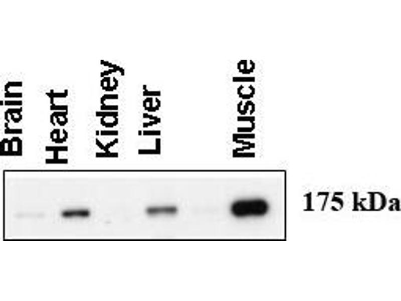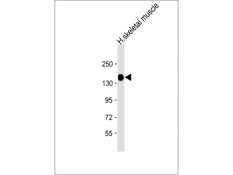 This AGL antibody is generated from rabbits immunized with a KLH conjugated synthetic peptide between 1479-1510 amino acids from the C-terminal region of human AGL.
