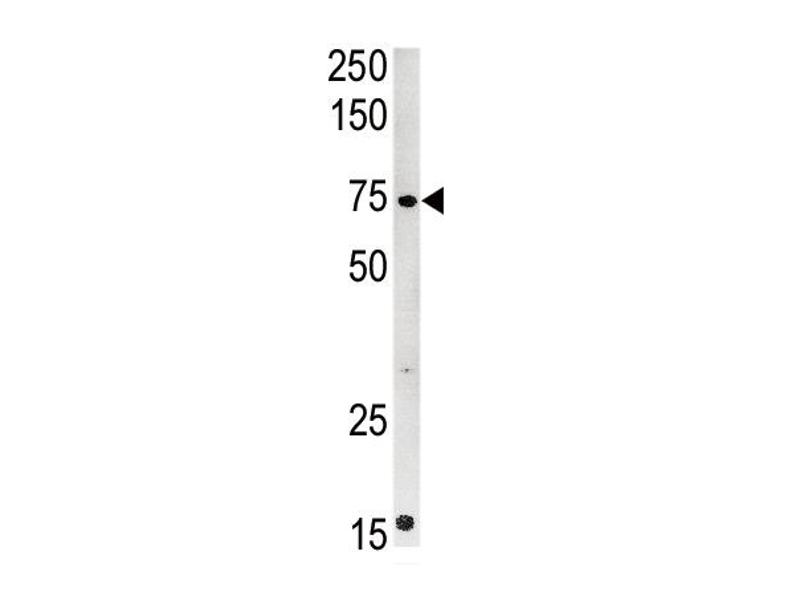 This CPT2 antibody is generated from rabbits immunized with a KLH conjugated synthetic peptide between 431-462 amino acids from the C-terminal region of human CPT2.