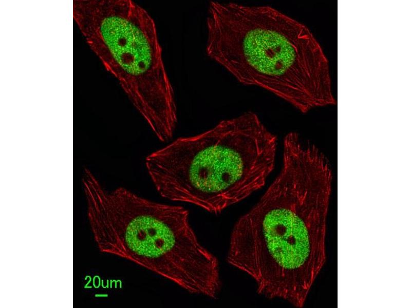 This FEN1 antibody is generated from rabbits immunized with a KLH conjugated synthetic peptide between 243-272 amino acids from the Central region of human FEN1.