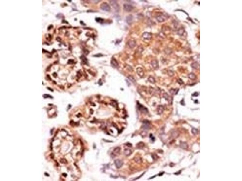 ABL2 is a cytoplasmic tyrosine kinase which is closely related to but distinct from ABL1. The similarity of the proteins includes the tyrosine kinase domains and extends amino-terminal to include the SH2 and SH3 domains. ABL2 is expressed in both normal and tumor cells.